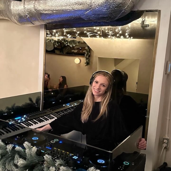 DJ Julie is a top NYC DJ and multi-instrumentalist, playing piano, violin, bass guitar and more.